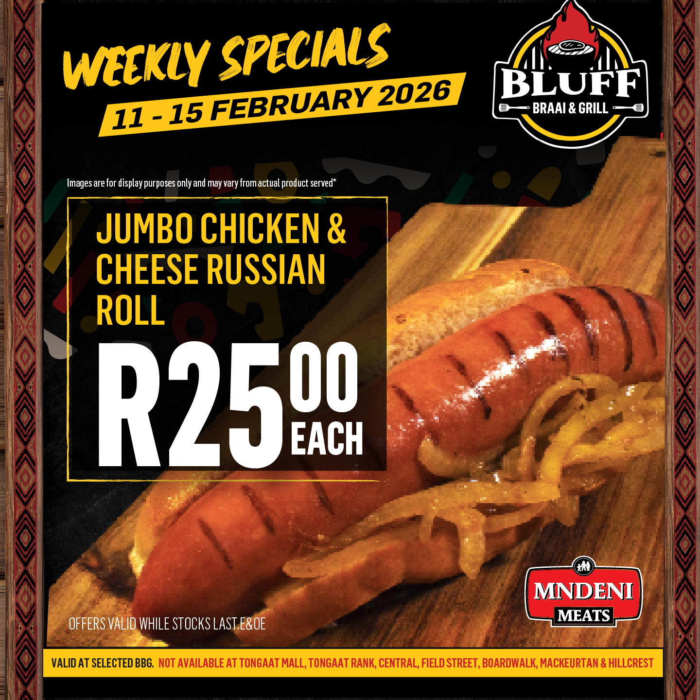 Promotions BLUFF MEAT SUPPLY MNDENI MEATS BRAAI & GRILL Download PDF Specials Download PDF Special Download PDF Specials Download our BBG App