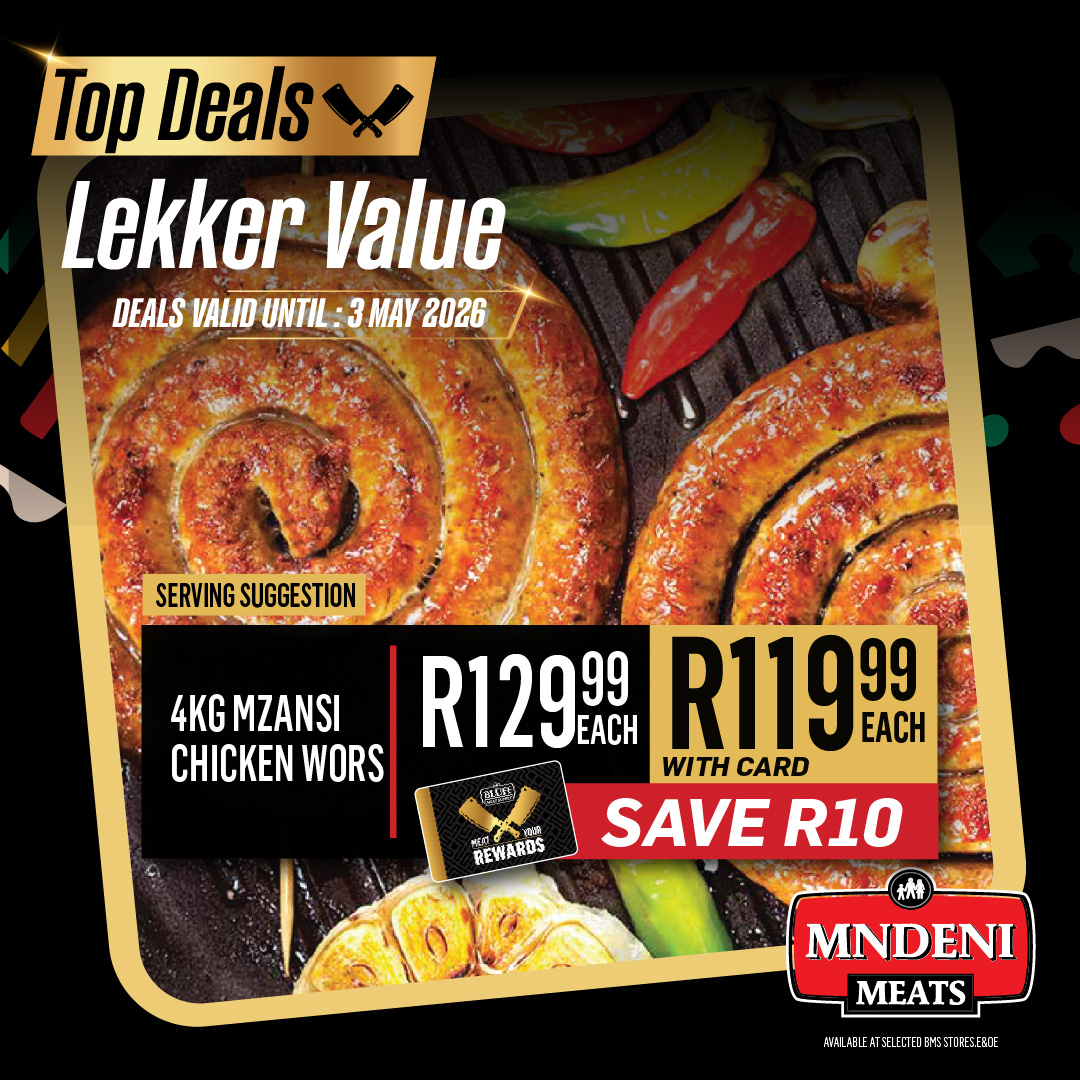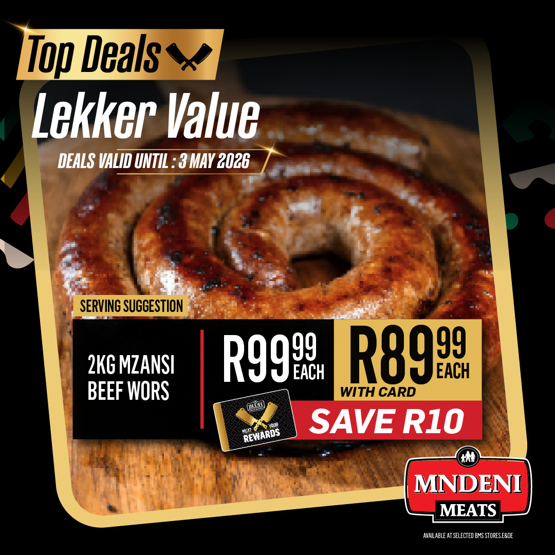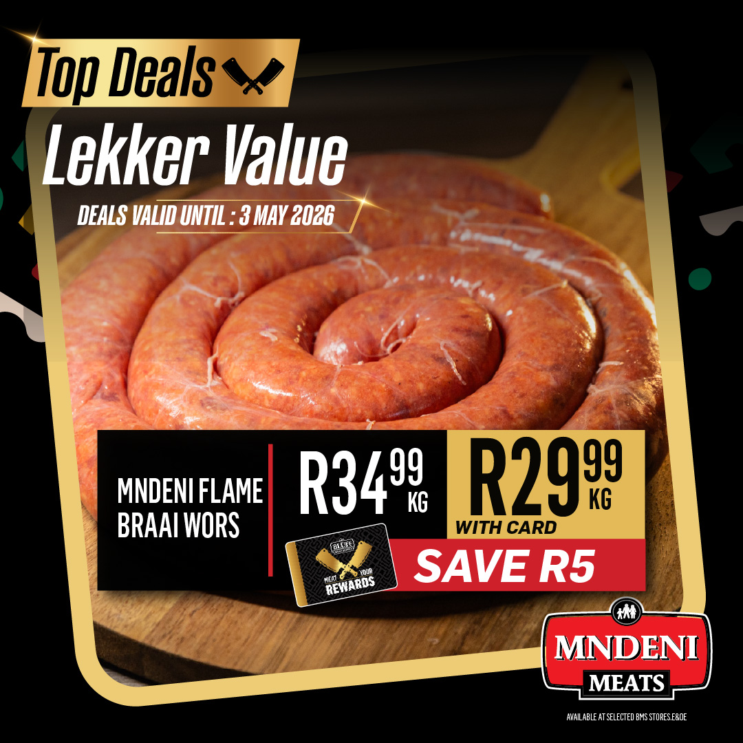 Promotions BLUFF MEAT SUPPLY MNDENI MEATS BRAAI & GRILL Download PDF Specials Download PDF Special Download PDF Specials Download our BBG App