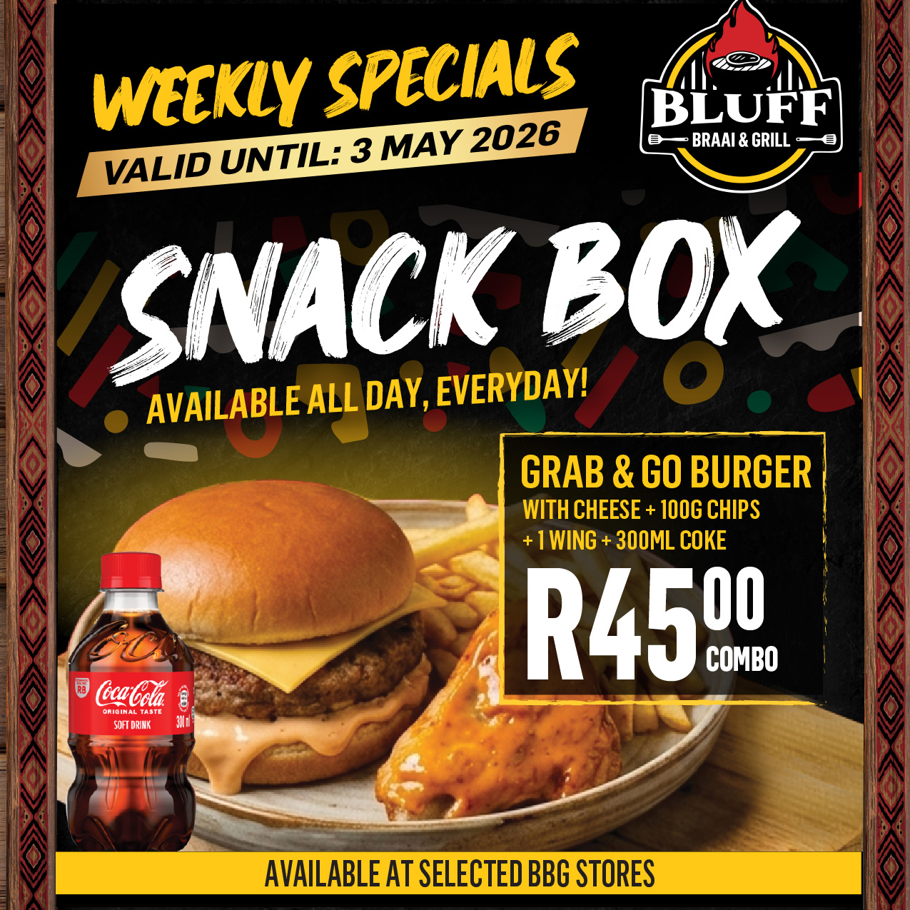 Promotions BLUFF MEAT SUPPLY MNDENI MEATS BRAAI & GRILL Download PDF Specials Download PDF Special Download PDF Specials Download our BBG App