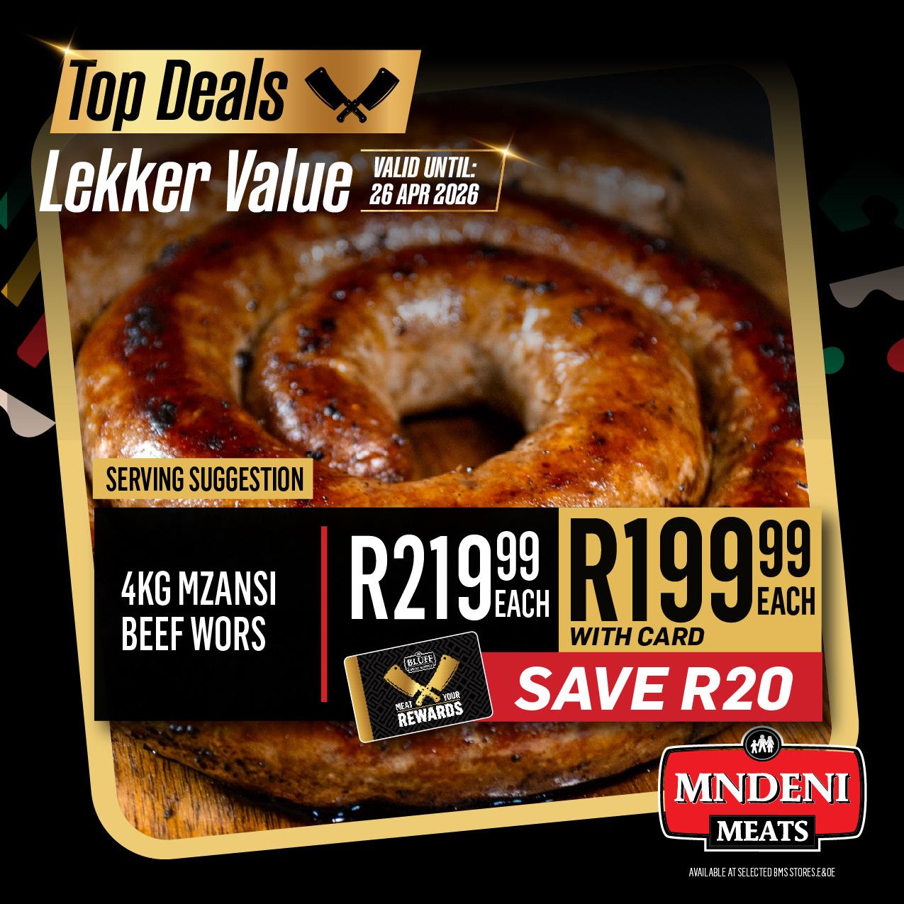 Promotions BLUFF MEAT SUPPLY MNDENI MEATS BRAAI & GRILL Download PDF Specials Download PDF Special Download PDF Specials Download our BBG App