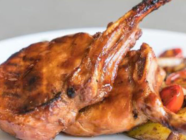 - Score the fatty edges of the pork chops and season well with salt and pepper.