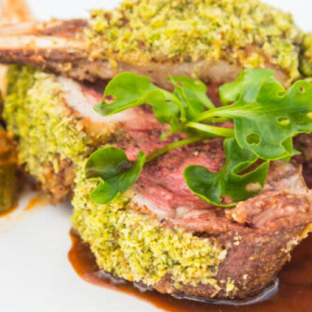 Pistachio-Crusted Beef Rib Roast with Holiday Wine Sauce