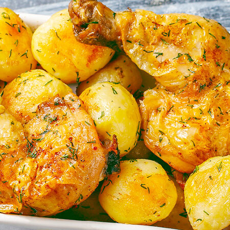 Baked Chicken Leg Quarters with Baby Potatoes